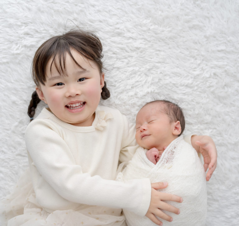 お兄ちゃんやお姉ちゃんと、生まれたばかりの赤ちゃんとの2ショット 上のお子様が小さいと、抱っこや一緒にゴロンの …