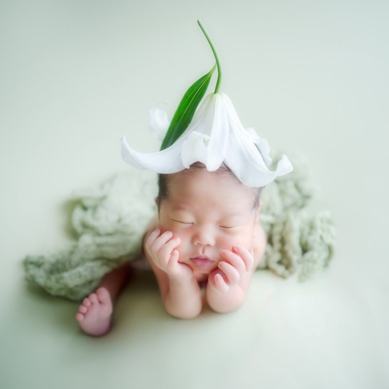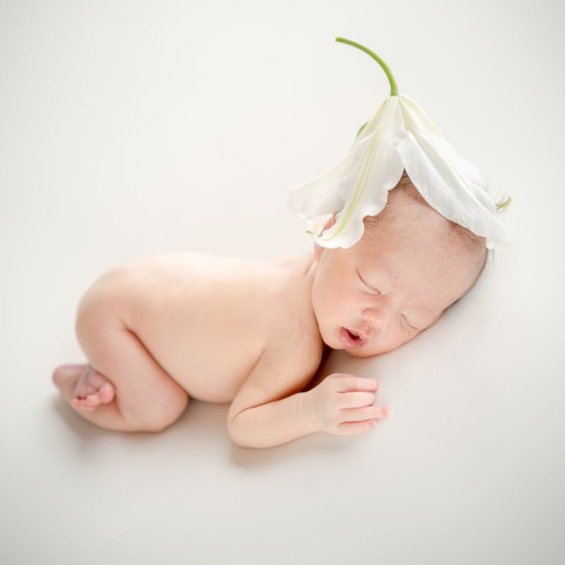 うつ伏せポーズ+はだかんぼ+ゆりの花