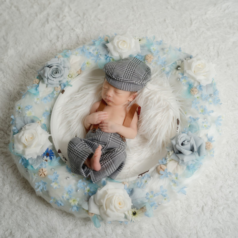 白くまちゃん+白いお皿+アーティシャルフラワーリース
